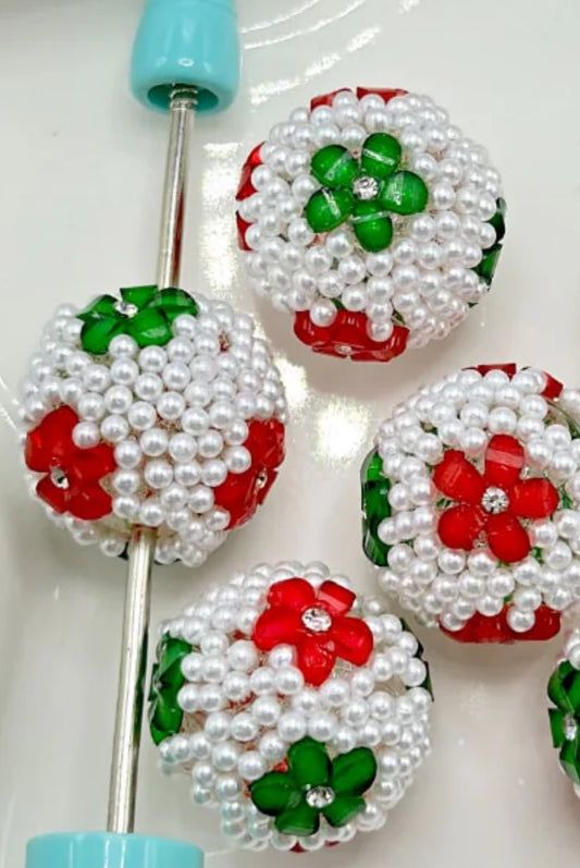 Five (5) Christmas seed beads flower design beads included/ jewelry Bead/ beadable pen beads/ keychain bead/ DIY/ 20mm