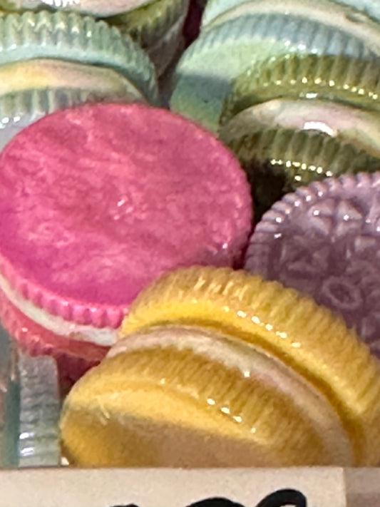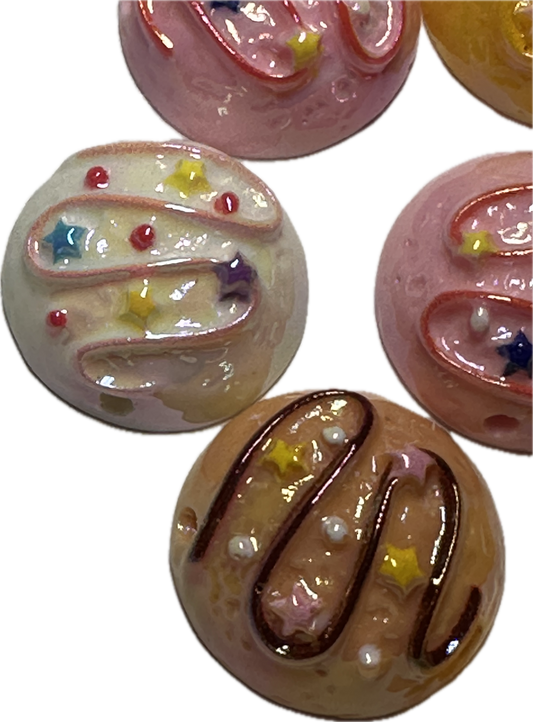 Five (5) unique pastel cookie beads included/ random choice of colors/ snack shaped acrylic/ Perfect for pen beading/ jewelry making/