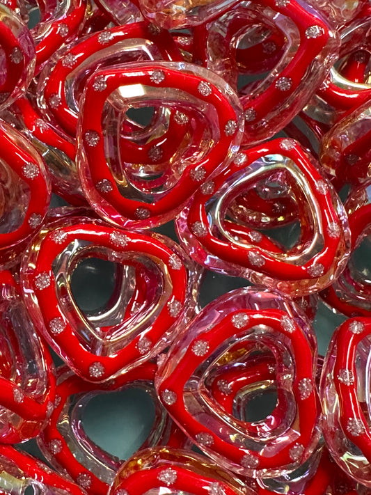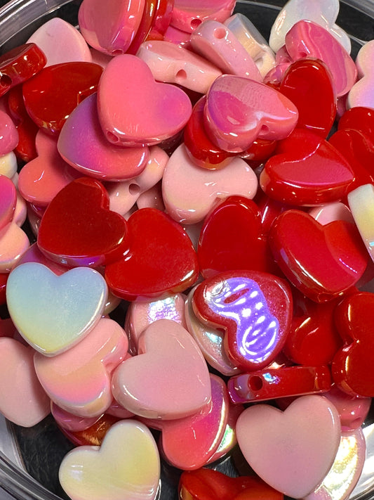 Five (5) heart shaped beads included/ red hand painted colors of loose acrylic beads -heart shaped/ Perfect for pen beading/ jewelry making/ random/ assorted