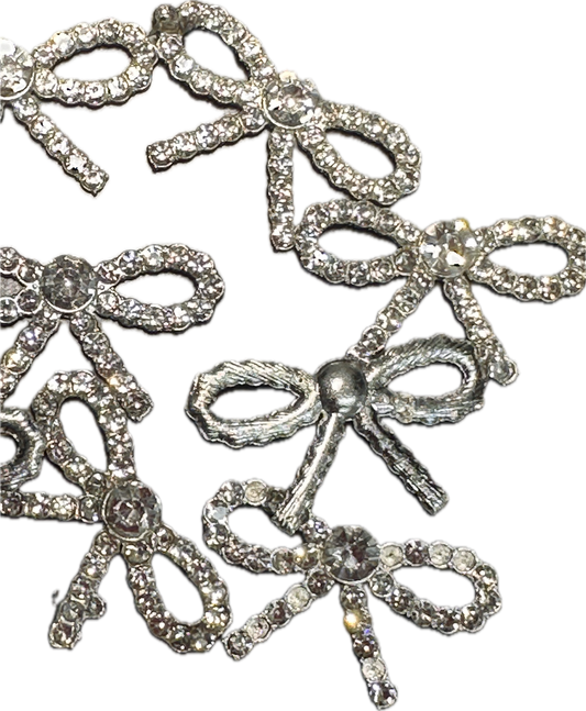 Flatback Rhinestone Bow Charms – Must Be Glued On, Sparkly Silver Embellishments