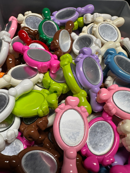 Five (5) mirror beads included/ One of each color/ hand mirror shaped acrylic/ Perfect for pen beading/ jewelry making/