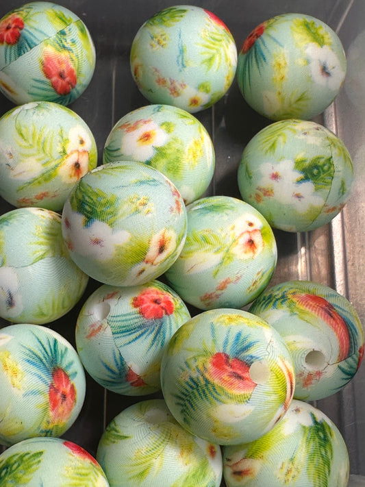 Flowery printed beads /15 mm round shaped/beadable pen/ keychain bead/10 beads included/