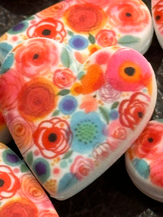 Floral Hearts Focal Bead / colorful flowers bead/ Abstracts