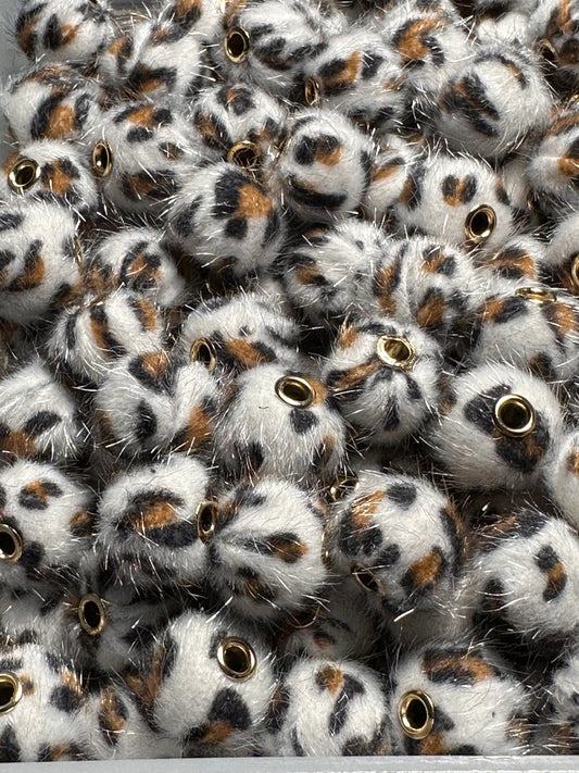 Fluffy fuzzy leopard print Pom Pom beads / jewelry Bead/ beadable pen beads/ keychain bead/bead/ 15mm/