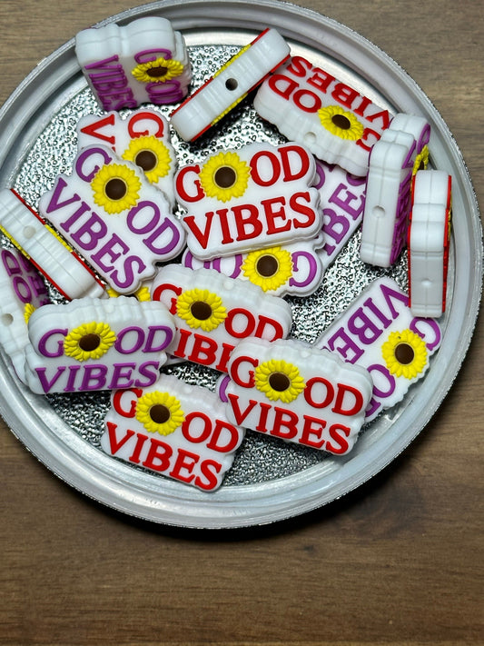Good Vibes bead/ Focal Bead/ beadable pen/ Silicone bead/ keychain bead/