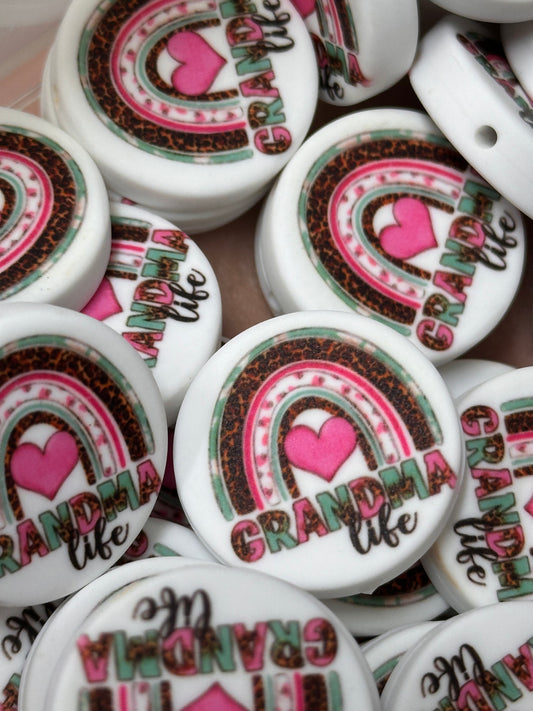 Grandma Focal Bead/ beadable pen/ Silicone bead/keychain bead/ circle shaped/ Mothers Day/ Grandmother