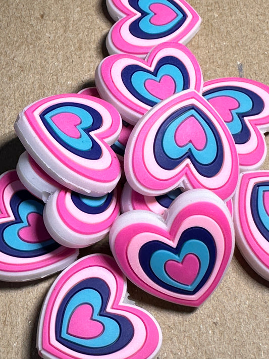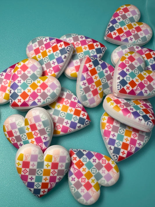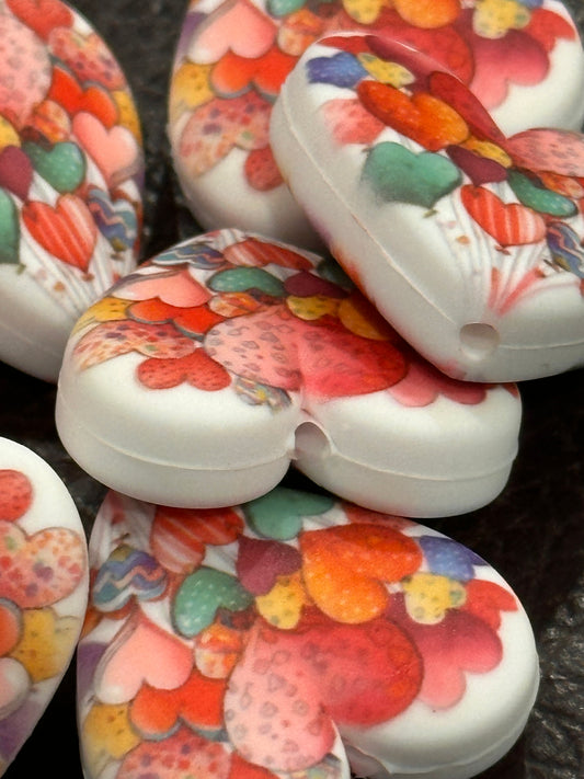 Heart shaped silicone focal bead with designs/ pen beading/ keychain bead/ DIY/ fancy bead