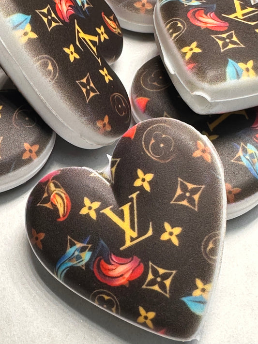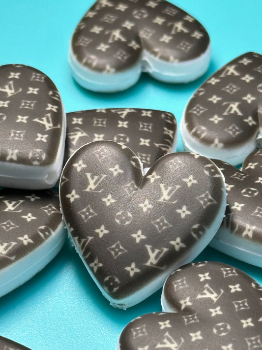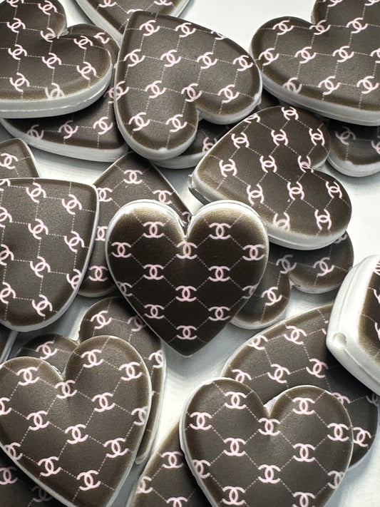Heart shaped silicone focal bead with designs/ pen beading/ keychain bead/ DIY/ fancy bead #1