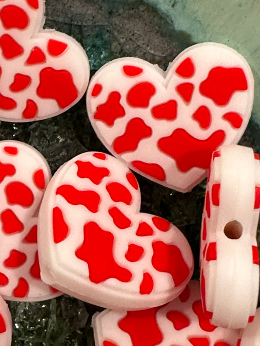 Heart shaped red cow spots focal bead