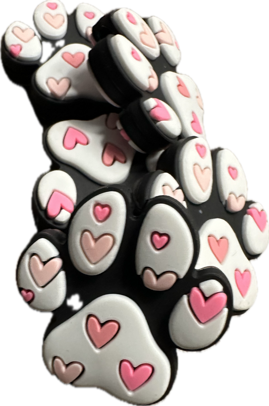 Hearts on Dog paw/ Focal Bead/ beadable pen/ Silicone bead/ keychain bead/ fur baby/ pet/ heart dog/ dog mom