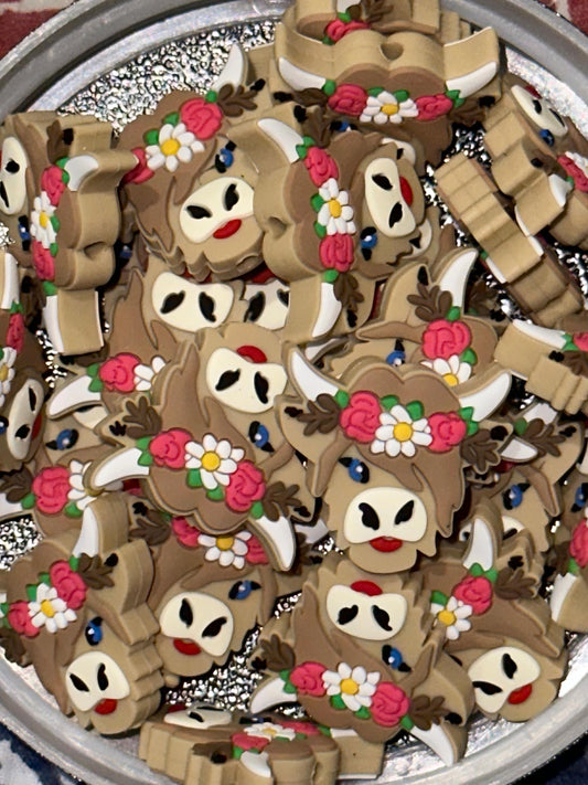 Highland Cow Focal Bead/ beadable pen/ Silicone bead/ cow/ keychain bead