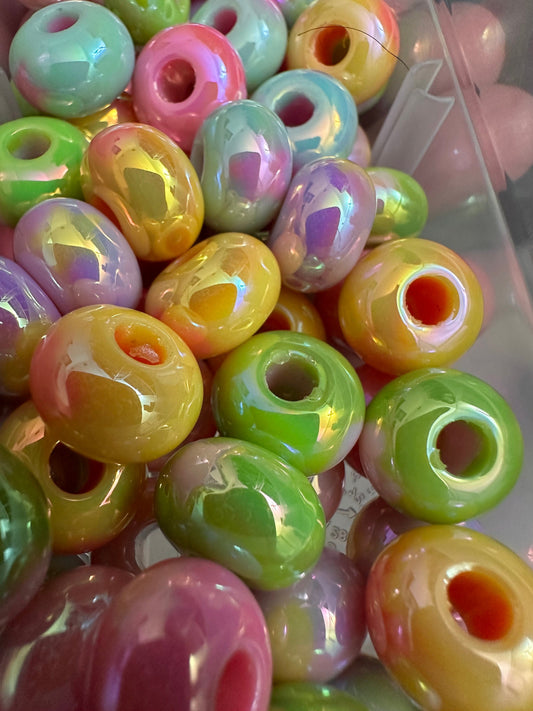 Hearts and stars design spacer beads/ beadable pen/ acrylic bead/ keychain bead/ Ten (10) beads included/ hole top to bottom/ designs on sides of beads