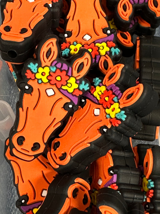 Horse/ Focal Bead/ beadable pen/ Silicone bead/ keychain bead/horseback/ flower halo