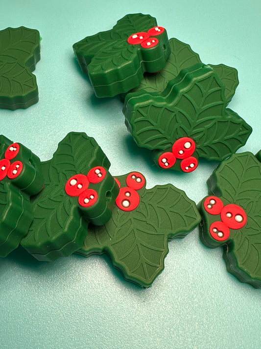 Holly berry / Christmas Focal Bead/ beadable pen/ Silicone bead/keychain bead/ mistletoe