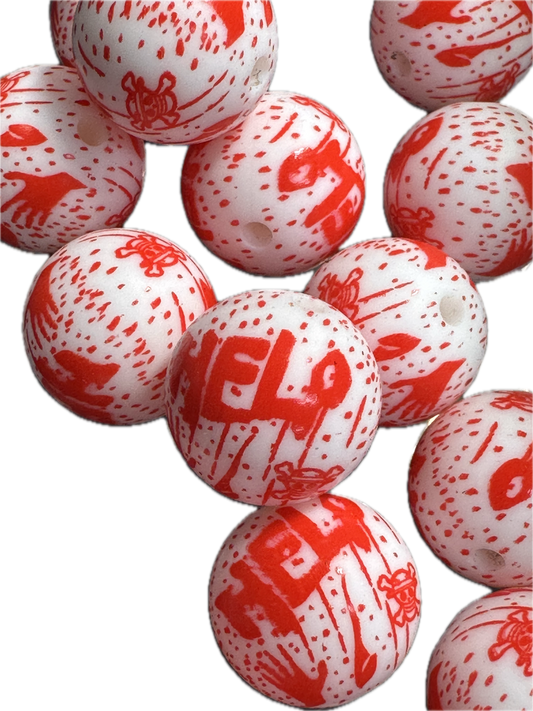 Horror HELP printed beads /15 mm round shaped/beadable pen/ keychain bead/10 beads included