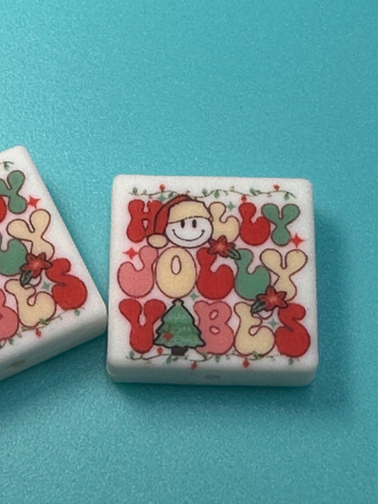 Holly Jolly Vibes Christmas Focal Bead/ beadable pen/ Silicone bead/ keychain bead/