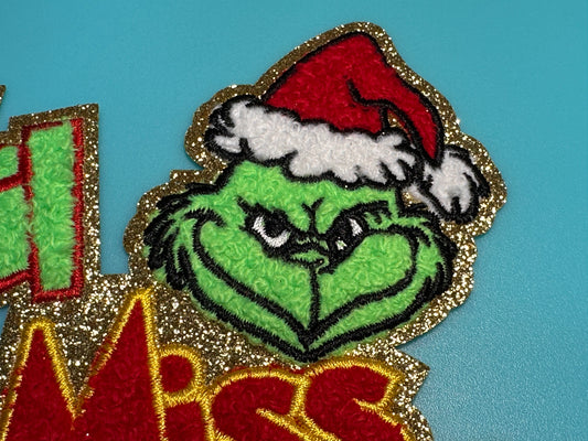 LIL MISS GRIN /EVERYONES FAVORITE GROUCHY CHRISTMAS HATER PATCH LARGE APPROX. 11 X 7.5 -RED