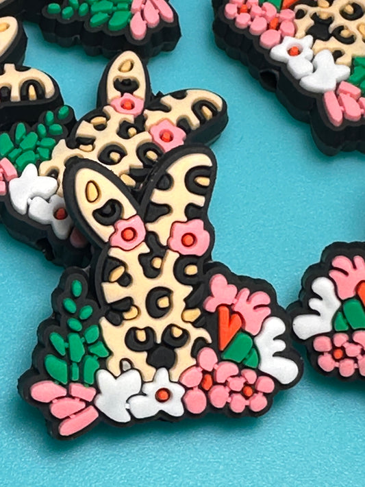 Leopard print Easter bunny focal bead/ silicone bead/ pen beading/ DIY/ Easter egg/ bunny ears