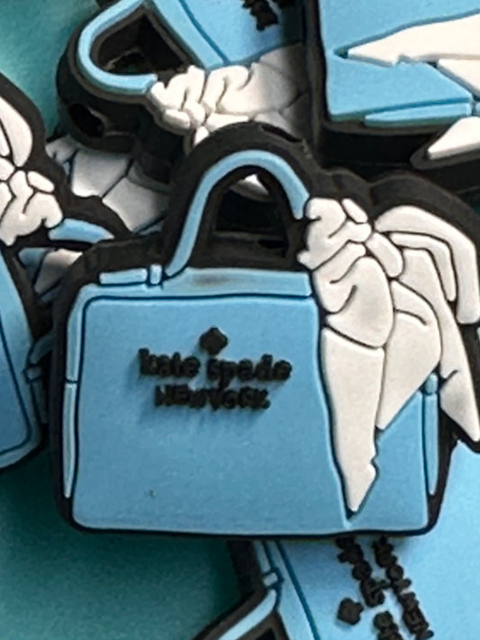 Light blue Purse Handbag silicone bead/ focal bead/KM tote with bow/ pen beading / keychain bead #3