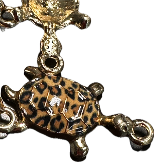Leopard print enameled metal turtle charms/ DIY-earrings,necklace,charm bracelet/ sea turtle