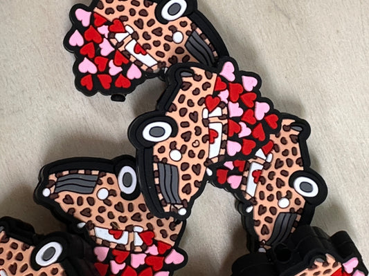 Leopard print car focal bead/ silicone truck focal bead/ hearts/ Valentine’s Day/
