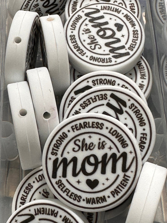 Mom Focal Bead/ beadable pen/ Silicone bead/ mother/ keychain bead/ circle shaped/ Mothers Day