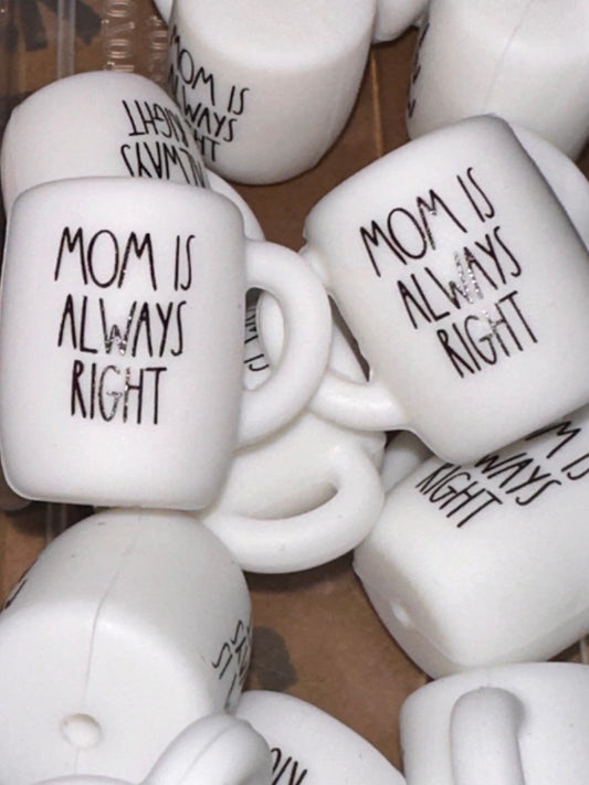 Mom is always right/ Coffee mug Focal Bead/ beadable pen/ momma / Silicone bead/ coffee cup/ keychain bead/ boss/ mothers day