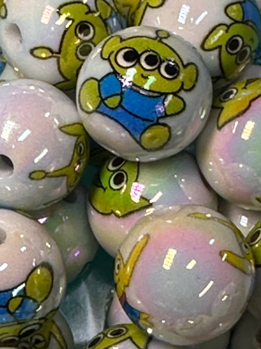 Monster acrylic beads/Ten (10) beads included/ 16mm/ green alien bead