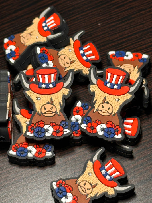 Patriotic Focal Bead/ American cow/ Stars and Stripes/ Highlander