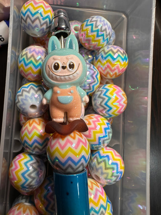 Pastel Multicolored zig zag stripes on white jelly beads/ Ten (10) acrylic multicolored round shaped beads included/ jewelry Bead/ beadable pen beads/ keychain bead/ DIY/ shiny unique 16mm beads UV coated/