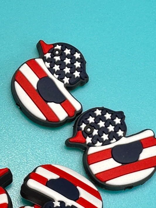 Patriotic Duck duck silicone focal bead/ ducked/ ducking