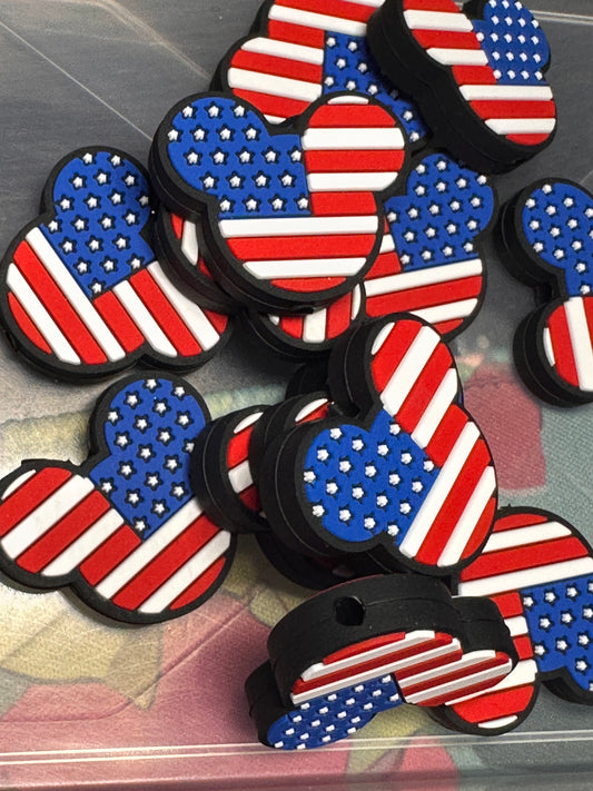 Patriotic flower/ Focal Bead/ holiday / beadable pen/ Silicone bead/ keychain bead/