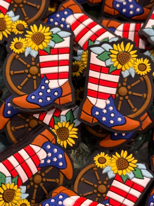 Patriotic Focal Bead/ American flag/ sunflower/ cowboy boots