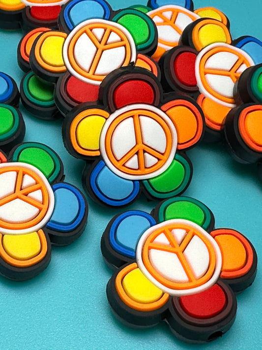 Peace sign flower/ Focal Bead / beadable pen/ Silicone bead/ keychain bead/