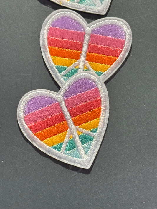 PEACE RAINBOW HEART EMBROIDERED IRON ON PATCH/ SIZE APPROX 3"x3"/ QUALITY MATERIAL/FABRIC PATCHES