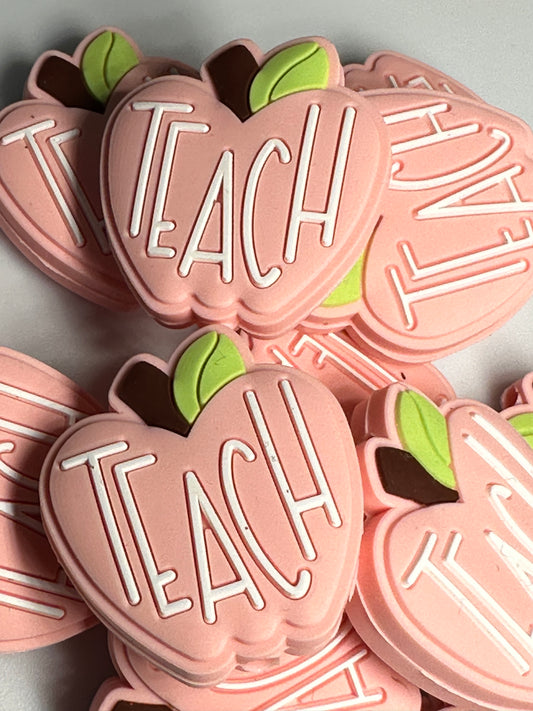 Pink Apple Teaching Focal Bead/ beadable pen/ Silicone bead/ keychain bead/
