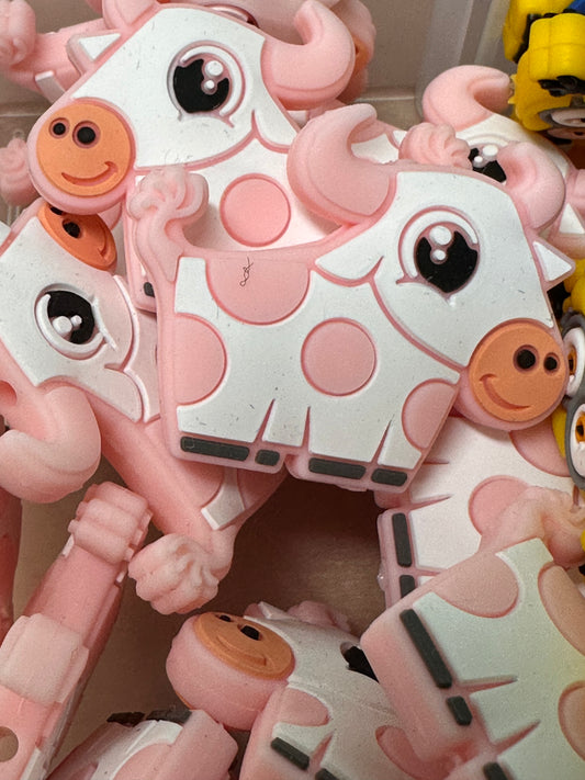 Pink Cow/Focal Bead/ beadable pen/ Silicone bead/ keychain bead/ farm/moo
