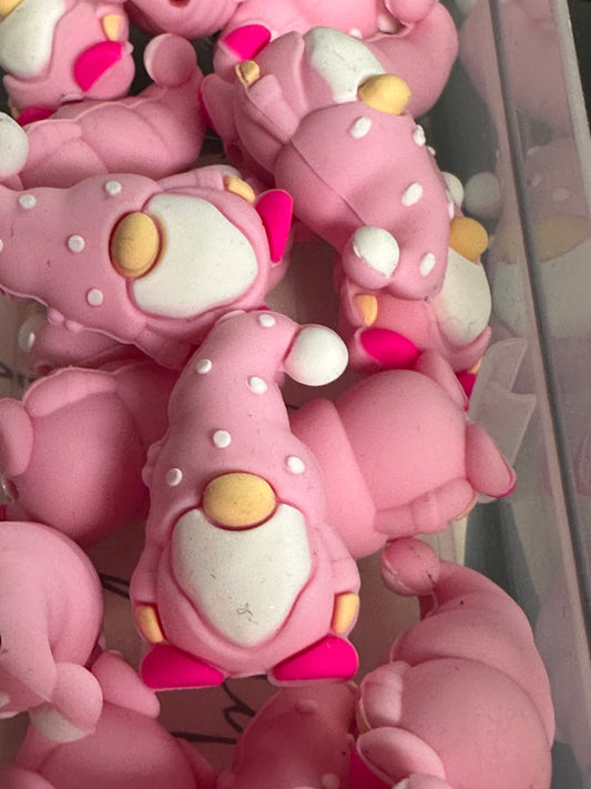 Pink 3D Gnome focal bead/ pink gnome with heart/ love/ Valentines Day