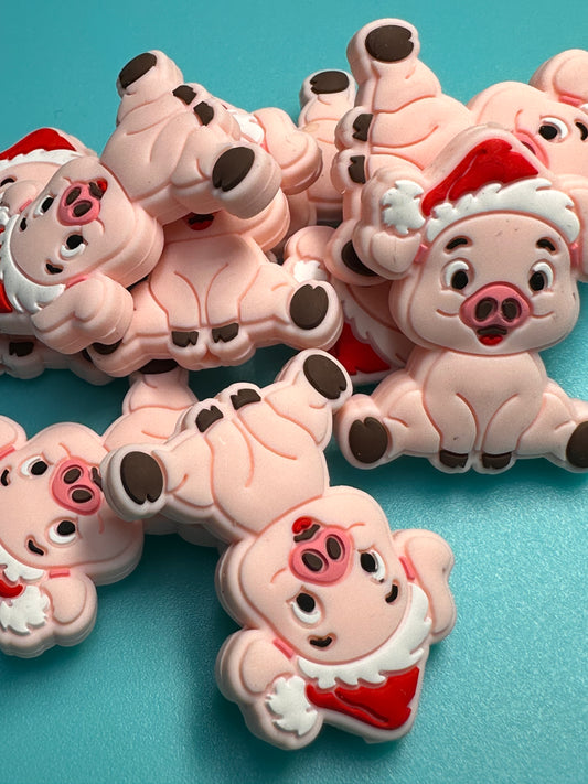 Pig with Santa hat/ Christmas Focal Bead/ beadable pen/ Silicone bead/ keychain bead/ reindeer on ornament
