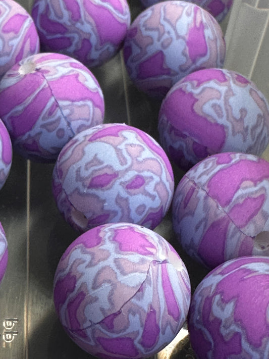 Purple marbled printed beads /15 mm round shaped/beadable pen/ keychain bead/10 beads included