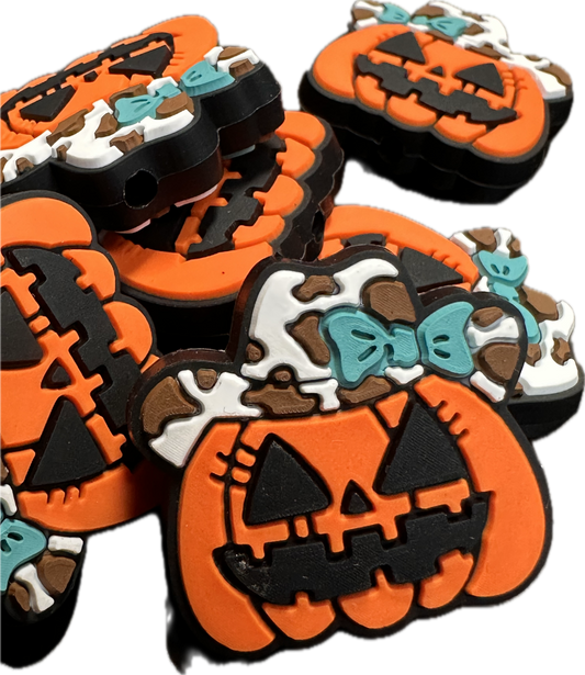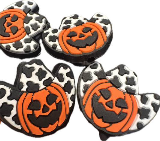 Pumpkin with cowboy hat and bow /Silicone Focal Bead/ cow spots/ jack-o’-lantern/ Halloween/ style #2