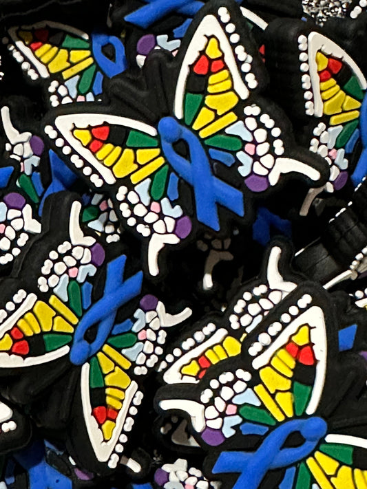 Rainbow butterfly/Focal Bead/ beadable pen/ Silicone bead/ keychain beads/ blue ribbon/ colon cancer ribbon/ domestic violence