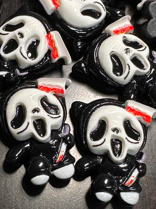 Set of 5 Glue On Resin Halloween Charms – Ghost Mask Flat Back Embellishments for DIY Crafts