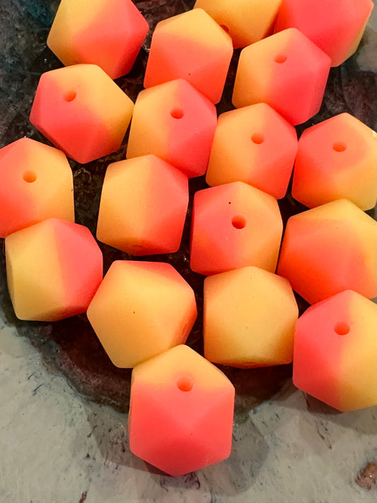 Silicon hexagon beads/ Ten (10) beads included/pen beading/ jewelry DIY/15mm/ yellow and orange ombre
