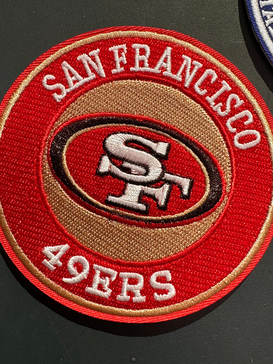 SF 49ers/EMBROIDERED IRON ON PATCH/ SIZE APPROX 4" ROUND/ QUALITY MATERIAL/FABRIC PATCHES/FOOTBALL TEAM