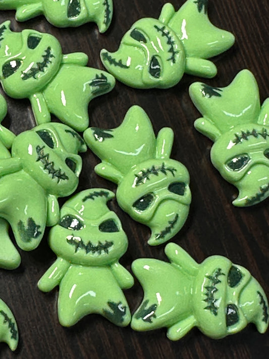 Set of 5 Glue On Resin Halloween Charms – Green Guy Flat Back Embellishments for DIY Crafts