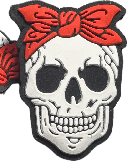 Skull bone with red headband Focal Bead/ beadable pen/ Silicone bead/ keychain/Halloween skull/ motorcycle rider/
