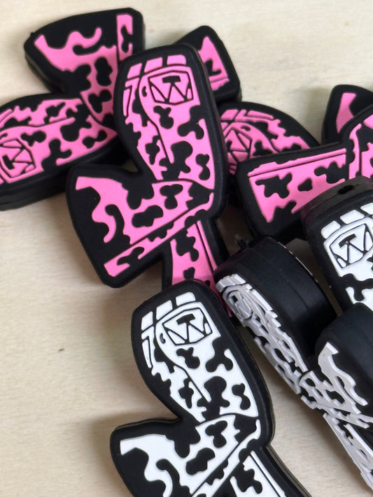 Silicone focal bead/ cow spots pattern/ pen beading/pants/ jeans