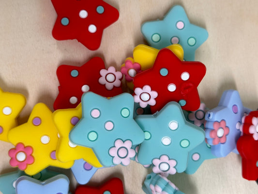Star with flowers Silicone focal bead for pen beading and keychain DIY