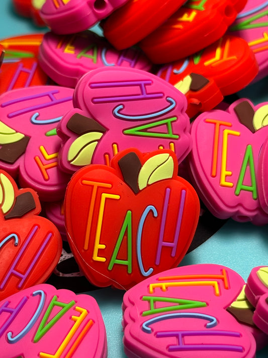 Teach Apple School Teacher Focal Bead/ beadable pen/ Silicone bead/ keychain bead/ teach